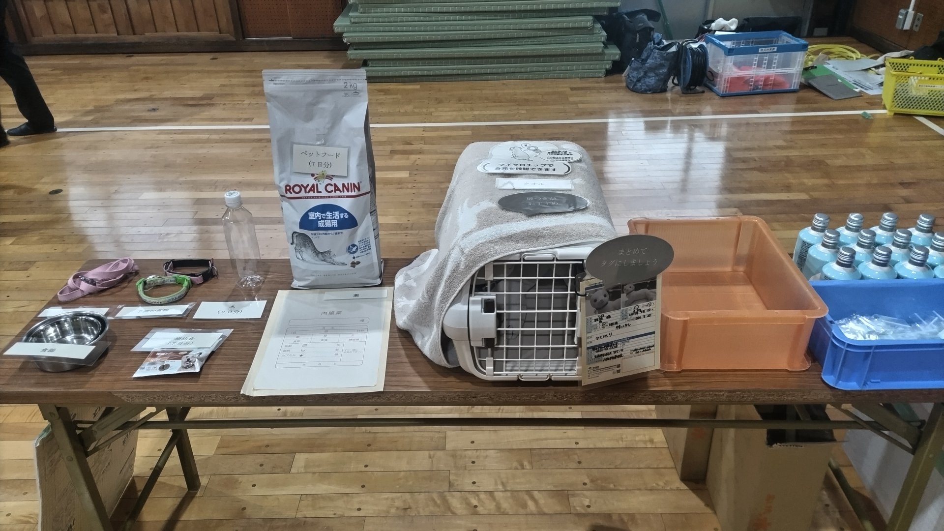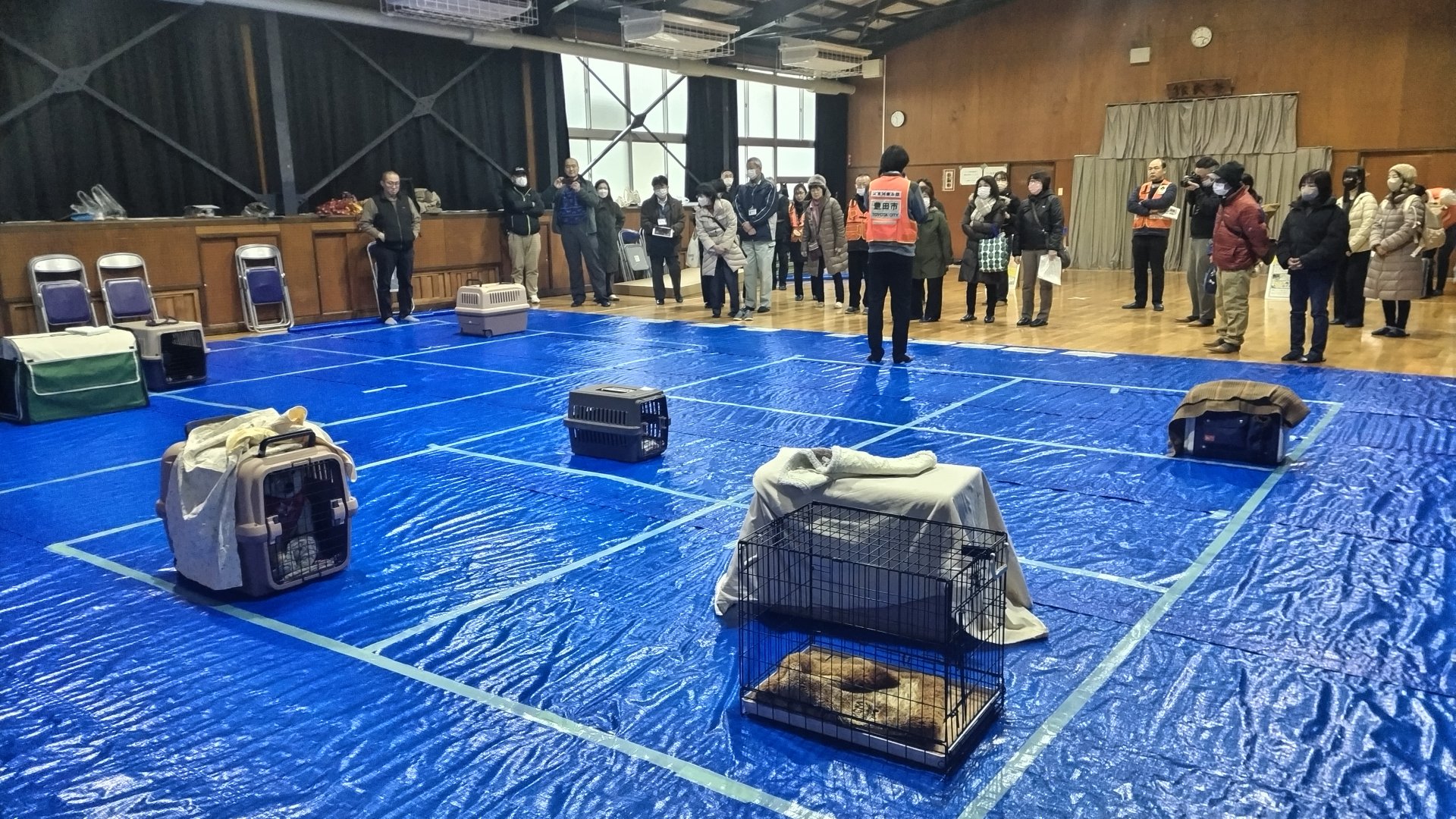 2月7日(土)午前9:30~11:50より、崇化館中学校の武道場にてペット同室避難所設営訓練を行いました。